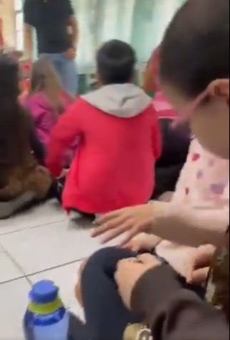 Las imágenes difundidas en redes sociales muestran a varios estudiantes de primaria “boca abajo”, para protegerse de alguna posible bala perdida. Otros alumnos se observan tomados de las manos ante el terror de las detonaciones por armas de fuego.
