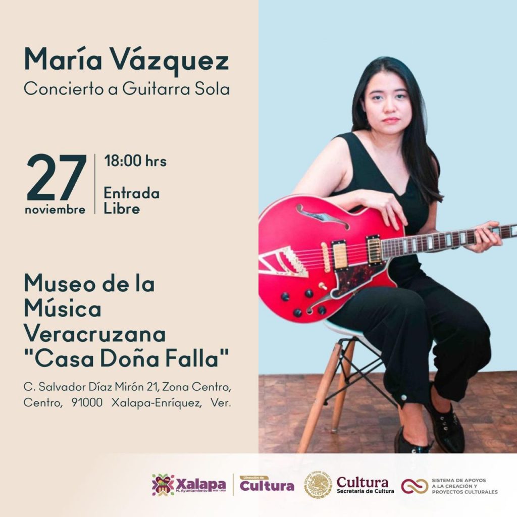 A las 17:00 horas, la Orquesta Pauta Nueva se presentará en la Universidad Anáhuac; a las 18:00 horas, en el Museo de la Música Veracruzana, María Vázquez realizará su concierto a guitarra sola, y en el CRX, a las 19:00 horas, se exhibirá el cortometraje “Huachinango rojo”, de Cinthya Lizbeth Toledo y el documental “Negra”, de Medhin Tewolde.
