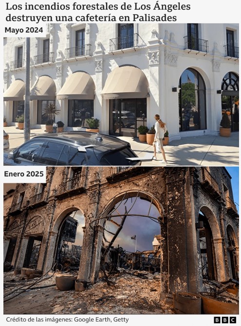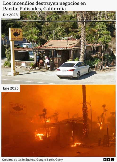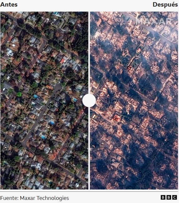 Antes y después: las imágenes que muestran la magnitud de la devastación causada por los incendios en Los Ángeles