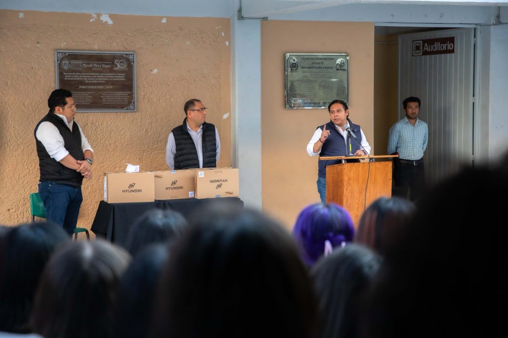 Xalapa, Ver.- Como parte de las acciones que se realizan en favor de la educación, el regidor Carlos Rugerio Martínez entregó equipos de cómputo en la Escuela de Bachilleres “Ricardo Flores Magón”, Oficial B.
