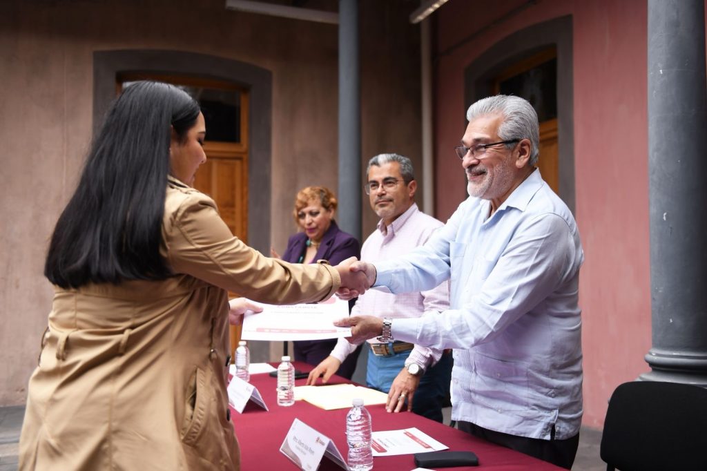 Ante la jefa de la Unidad del Archivo Municipal, Blanca Luz Sandoval Zapata, el Alcalde entregó reconocimientos al personal con más de diez años de antigüedad y quienes participaron en la capacitación en materia de procesos técnicos en archivo de trámite.