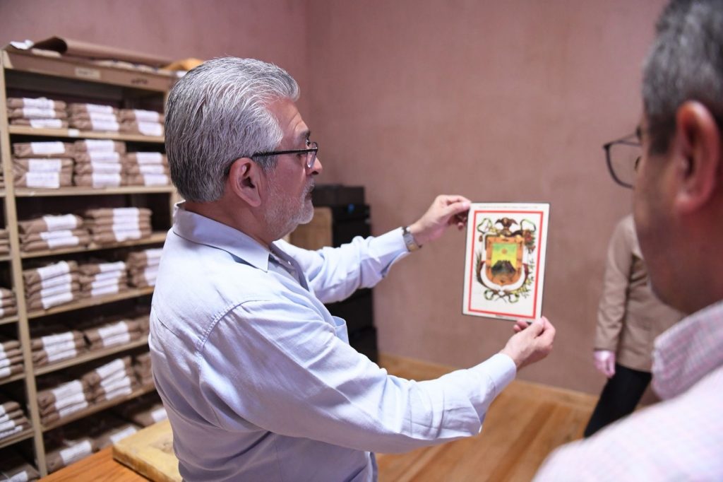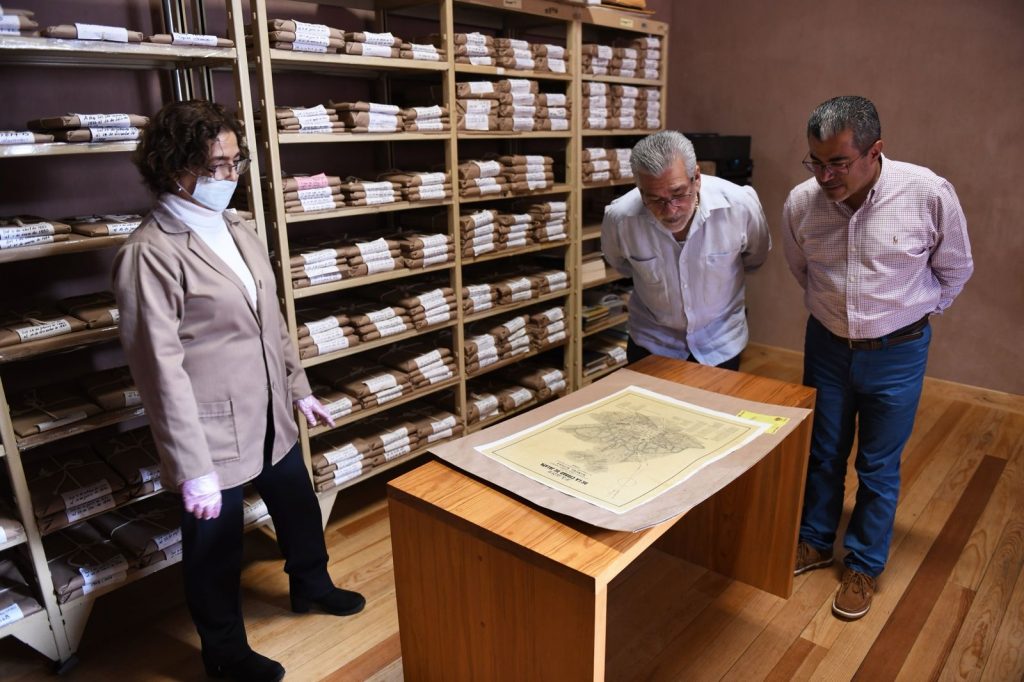 Tras el acto protocolario, el Presidente Municipal conoció personalmente la labor que se realiza en el Salón de Libros de Cabildo, donde se resguarda el primer libro de Actas de Cabildo, que contiene documentos que datan del año 1793, así como el Libro de Escudos Familiares y planos de la ciudad de 1869.