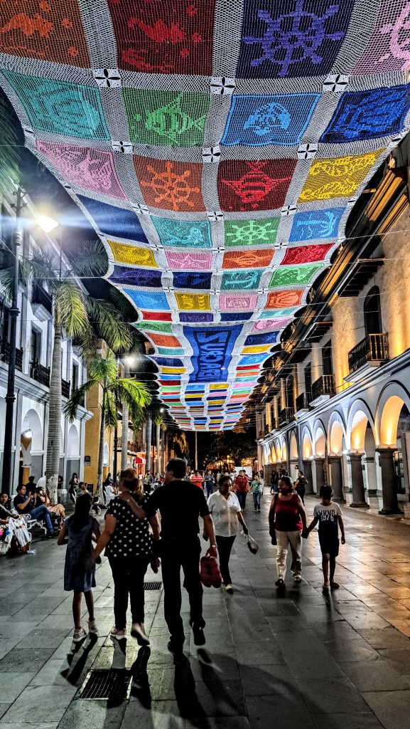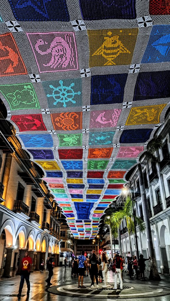 En un recorrido en el Centro Histórico de la Ciudad del Puerto de Veracruz puedes encontrar, el tapete aéreo artesanal, ubicado en el corredor Zamora, el cual mide 130 metros de largo por 8 de ancho; fue confeccionado por artesanos de Veracruz y Alvarado.