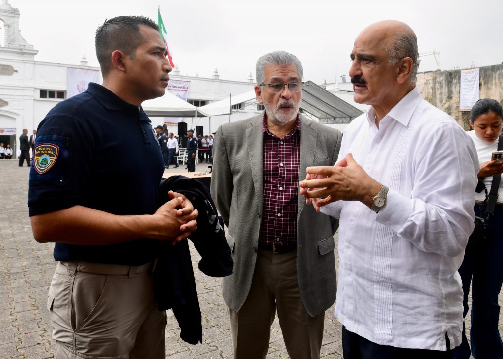 Emiliano Zapata, Ver.- El alcalde Alberto Islas Reyes asistió a la conmemoración del Día del Policía Veracruzano, ceremonia que encabezó la gobernadora del estado, Rocío Nahle García, en las instalaciones del Centro de Estudios e Investigación en Seguridad (CEIS) de El Lencero.