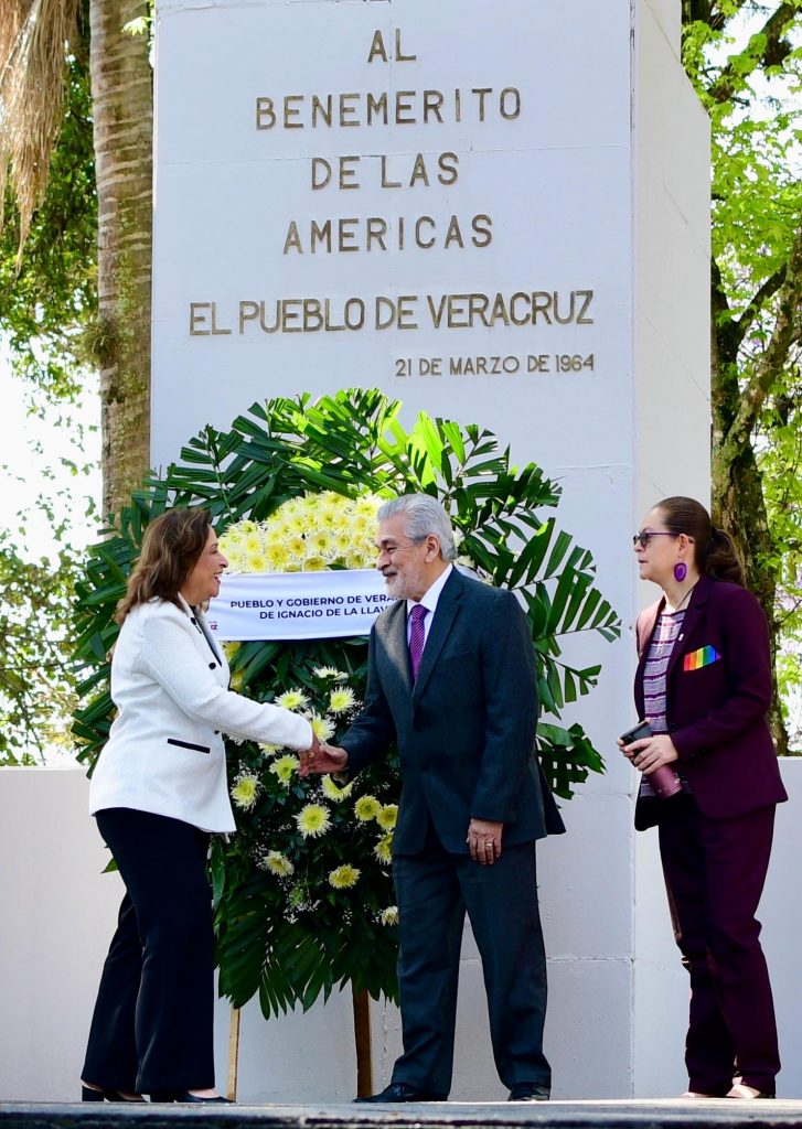 Además, se depositó una ofrenda floral y montó guardia de honor en el monumento a Benito Juárez.