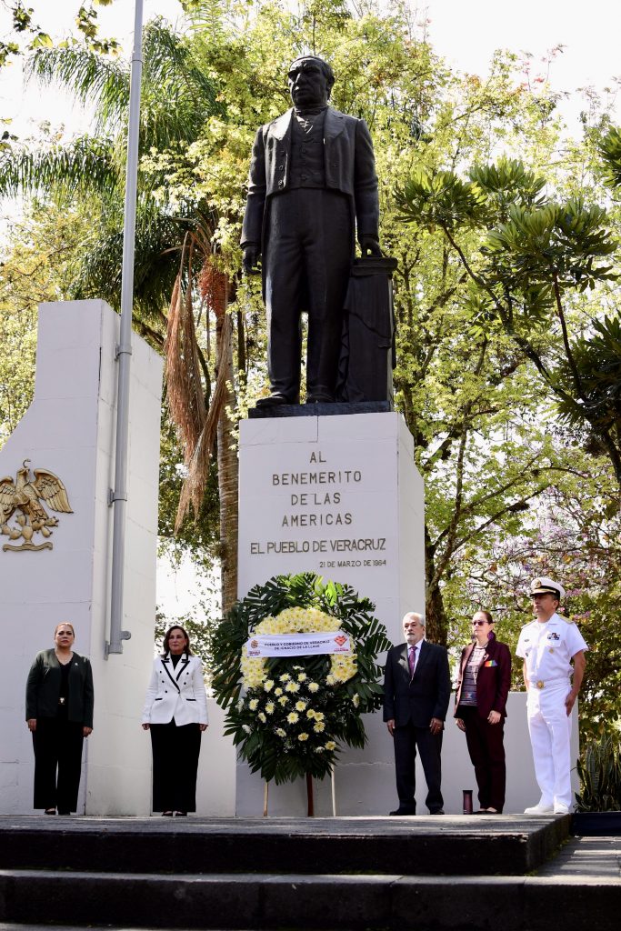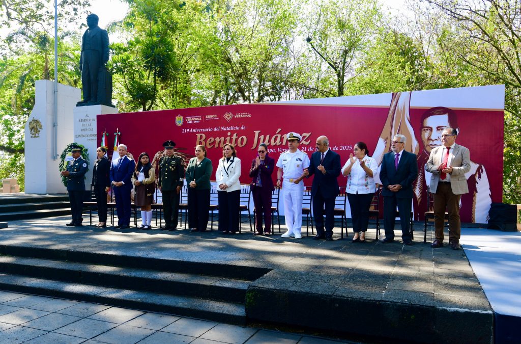 Xalapa, Ver.- El presidente municipal Alberto Islas Reyes asistió a la ceremonia conmemorativa por el 219 aniversario del natalicio de Benito Juárez García, acto que encabezó la gobernadora Rocío Nahle García en el parque Benito Juárez.