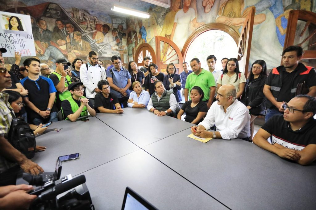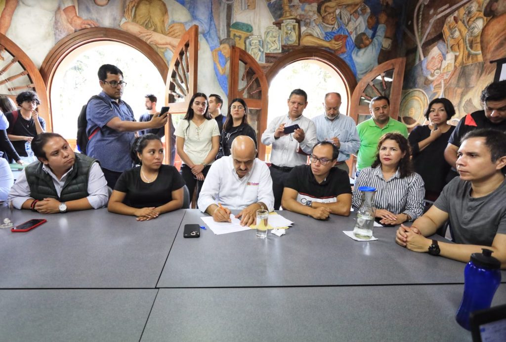 Acompañado por la regidora María Guadalupe Márquez Leonardo y el regidor Carlos Rugerio Martínez, el Edil firmó una minuta de acuerdos ante las y los representantes estudiantiles.