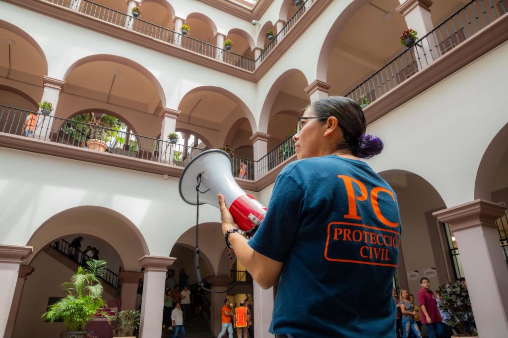 El director de Protección Civil, Luis Sardiña Salgado, informó que de acuerdo con el Simulacro Nacional 2024, este jueves a las 11:00 horas se registró una hipótesis de sismo con epicentro en Acapulco, Guerrero, que tuvo una magnitud de 7.5, por lo que personal de la dependencia y unidades internas de Protección Civil evacuaron a mil 139 personas que se encontraban en Palacio Municipal y oficinas del Ayuntamiento ubicadas en el Centro Histórico.