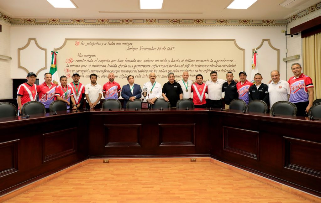 Xalapa, Ver.- El presidente municipal Ricardo Ahued Bardahuil entregó reconocimientos a integrantes del equipo de futbol del Instituto Veracruzano del Deporte que obtuvieron el campeonato en los 51 Juegos Nacionales Deportivos y Recreativos de los Trabajadores 2023.