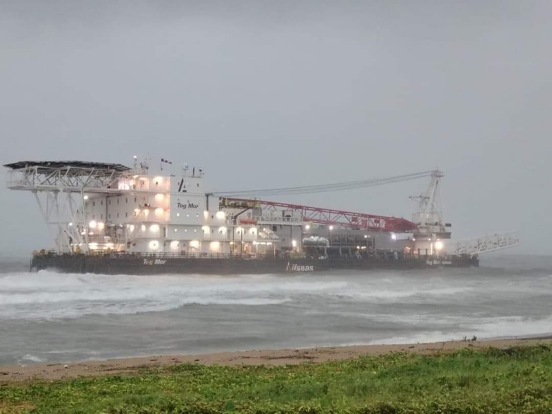 Fuerte oleaje arroja hacia la costa de VillaAllende Coatzacoalcos a la Barcaza “Tog Mor”, misma que quedó varada con 135 tripulantes a bordo. Son los efectos del Frente Frío 1 en la zona costera del sur de Veracruz, la tarde de este sábado 07 de ...