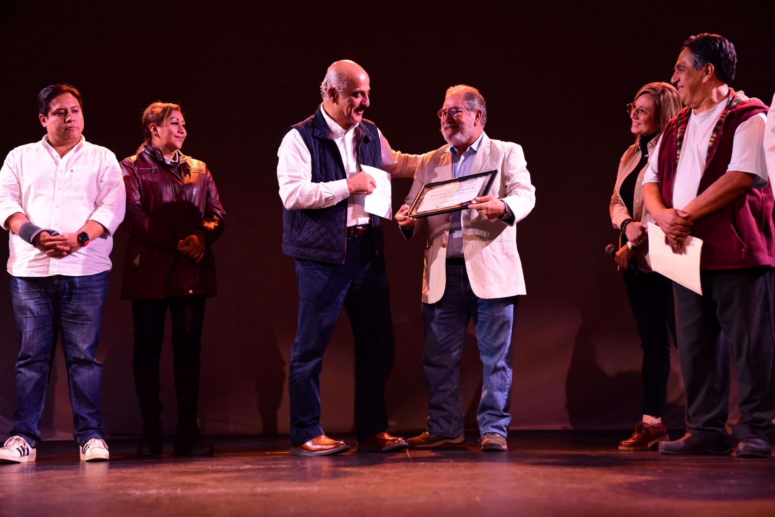Xalapa, Ver.- Por ser un patrimonio cultural de la ciudad y 70 años de trayectoria, el presidente municipal Ricardo Ahued Bardahuil entregó un reconocimiento a la Compañía Titular de Teatro de la Universidad Veracruzana y la Orteuv, en el marco de la proyección ...