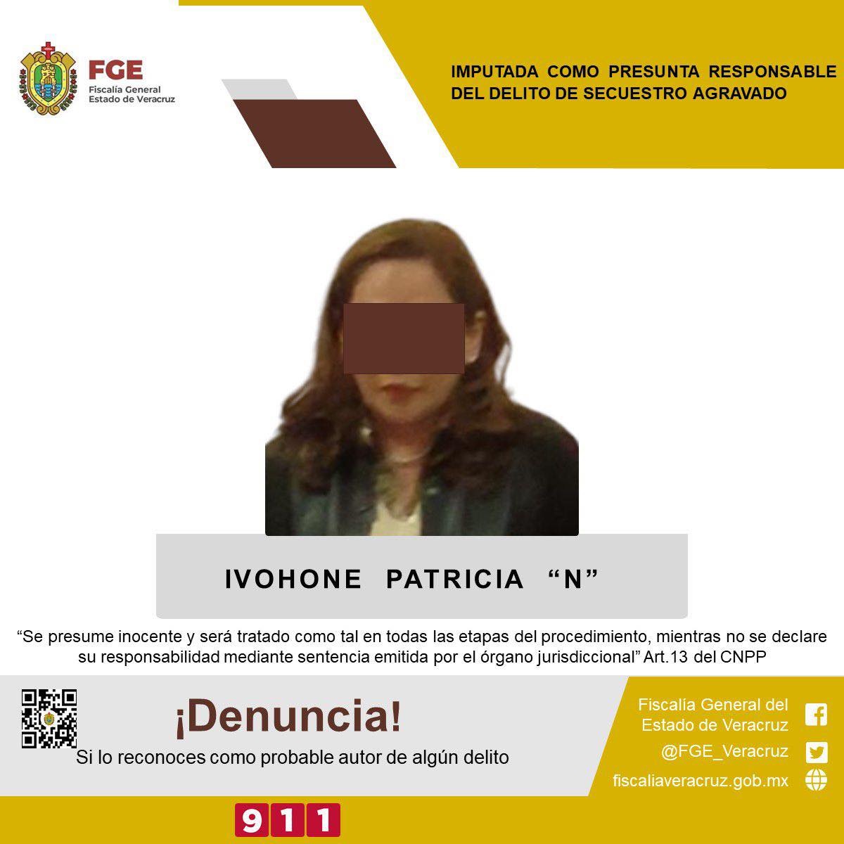 XALAPA, Ver; 24 de septiembre del 2023.-La Fiscalía General del Estado realizó imputación en contra de Ivohone Patricia “N” como presunta responsable del delito de secuestro agravado, hechos suscitados en Poza Rica el pasado 3 de abril del presente año, en ...