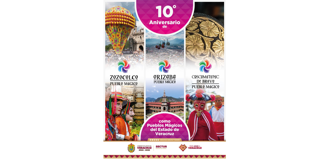Xalapa, Ver., jueves 25 de septiembre de 2025.- Con motivo del 10 aniversario del nombramiento de Orizaba, Zozocolco y Coscomatepec como Pueblos Mágicos, la Secretaría de Turismo (SECTUR), invita al público a disfrutar de las actividades ...