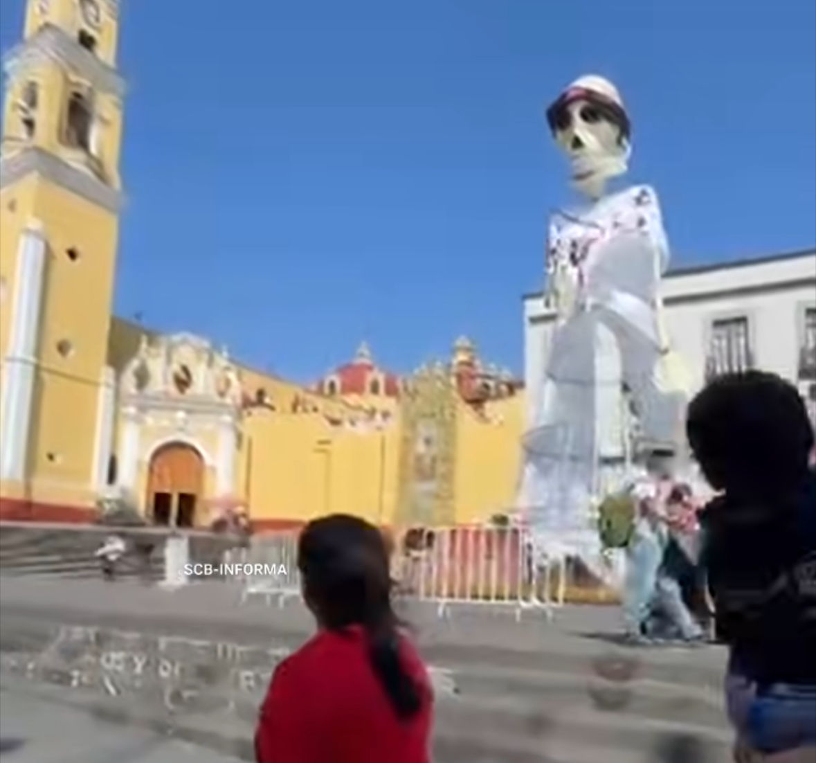 La elegante Catrina instalada en la explanada de Plaza Lerdo #Xalapa amaneció hoy en plena lucha contra las rachas del frente frío #11 El viento no perdonó su altura ni su porte, y tuvo que intervenir Protección Civil para acordonar la zona antes de que terminara ...