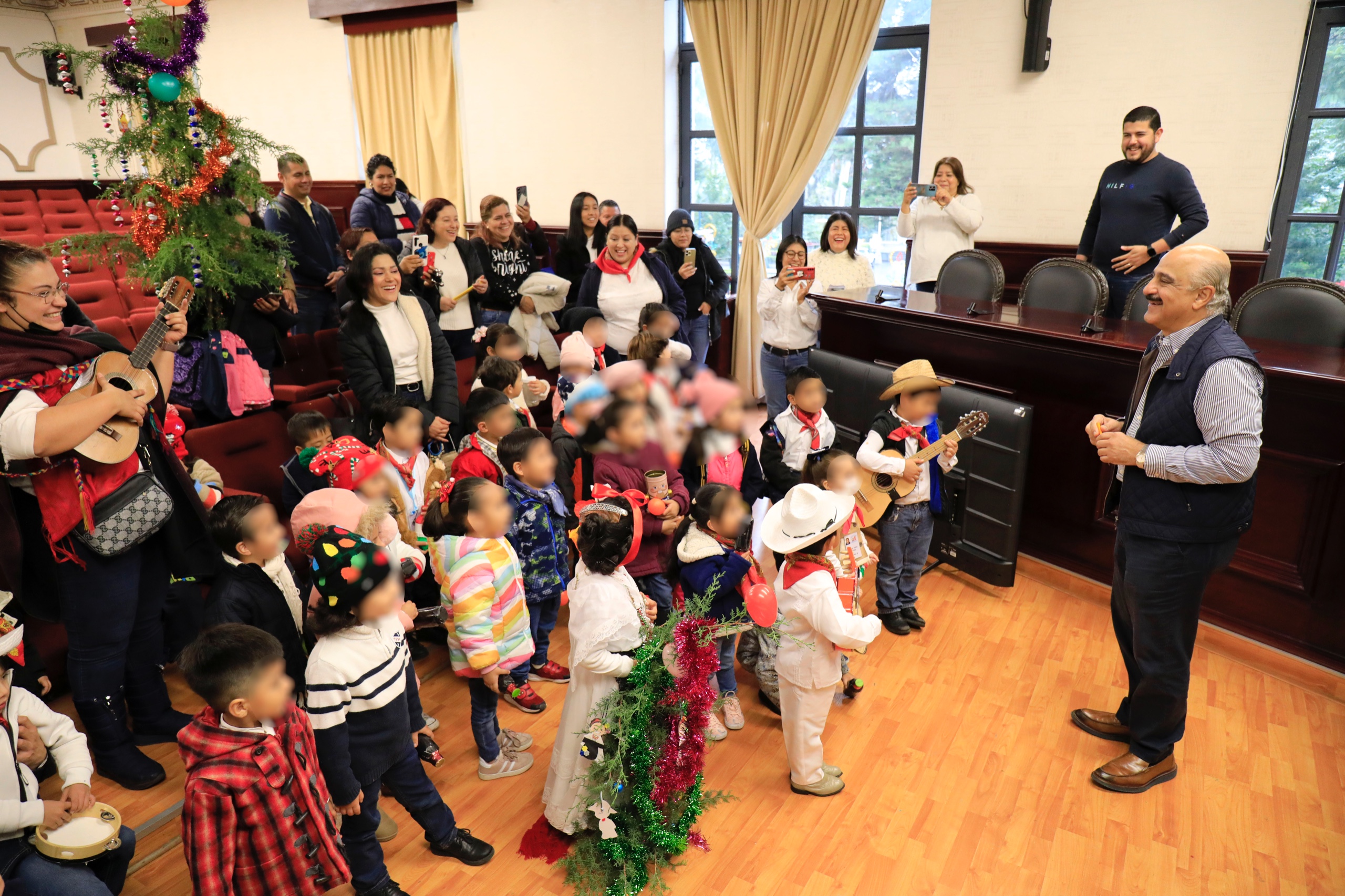 Xalapa, Ver.- El presidente municipal Ricardo Ahued Bardahuil recibió en la Sala de Cabildo a personal docente y alumnado del Jardín de Niños “José María Morelos y Pavón”, quienes le cantaron La Rama navideña. Acompañado por el regidor Daniel Fernández Carrión, ...