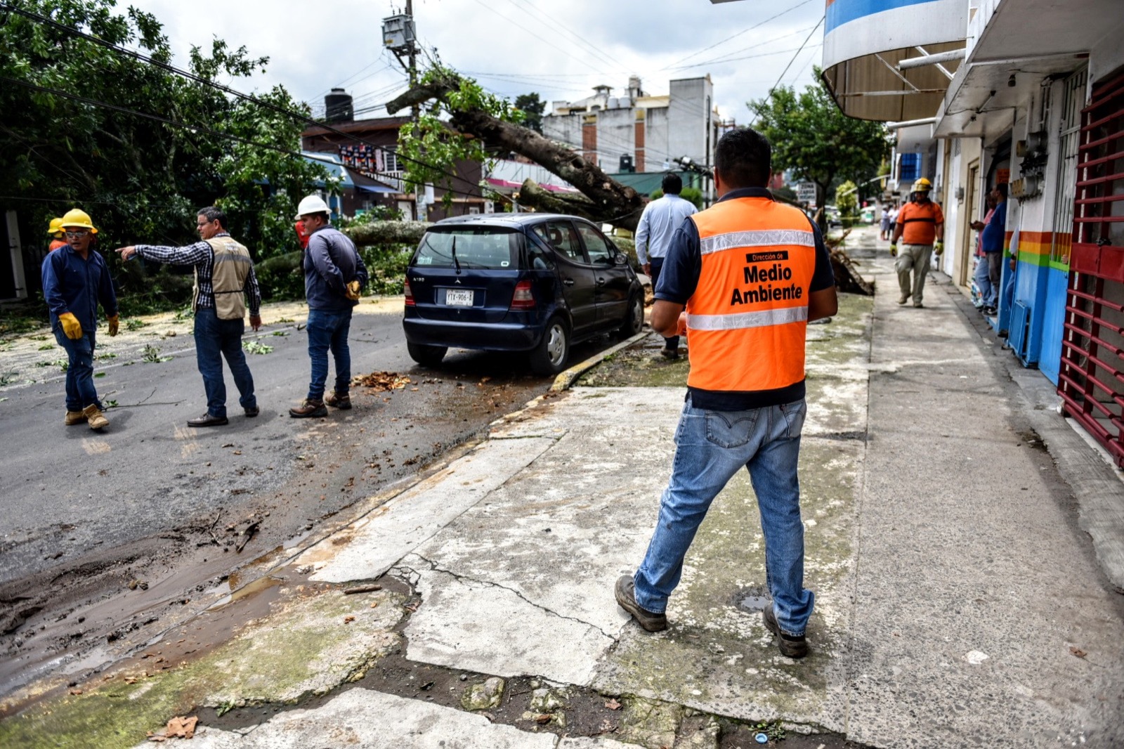 Xalapa, Ver.- Personal de las direcciones de Medio Ambiente, Alumbrado Público, Obras Públicas y Protección Civil Municipal atendieron la caída de un árbol en la avenida Mártires del 28 de Agosto. De acuerdo con el titular de Protección Civil, Luis Sardiña ...