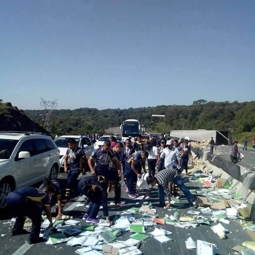 Un tráiler cargado con cientos de cajas de libros de texto gratuitos volcó, pero esta vez no hubo rapiña a diferencia de otros accidentes donde la mercancía se pierde por saqueos. Jóvenes del Pentathlon Veracruz–Puerto ayudaron al conductor ileso y colaboraron ...