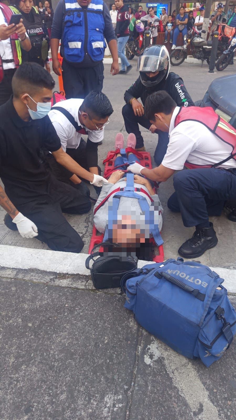 Personal de emergencias atiende a una mujer que fue atropellada a la altura de la pluma de acceso de Plaza Cristal de esta capital veracruzana. La mujer atravesaba la calle cuando fue alcanzada por el conductor de un vehículo de modelo pasado. Personal de la ...