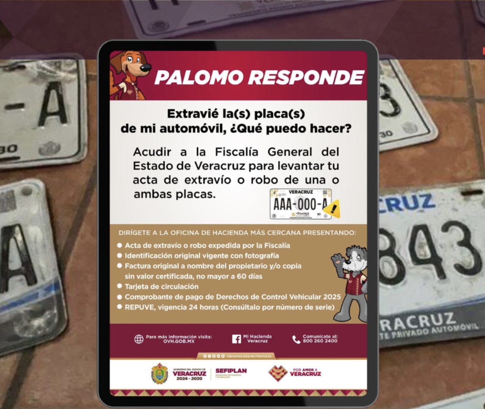 Xalapa, Ver., jueves 23 de enero de 2025.- El Gobierno del Estado informa que, en caso de extravío o robo de una o ambas placas de su vehículo, las personas contribuyentes pueden realizar el trámite de reposición de manera sencilla. Para ello, la Secretaría de ...