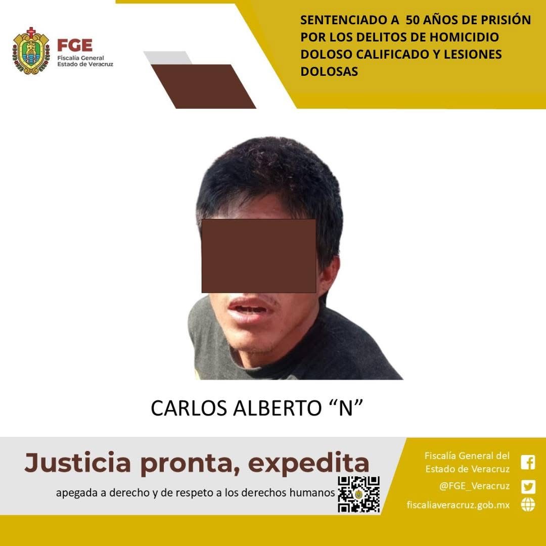 Veracruz, Ver., 09 de enero de 2025.- La Fiscalía Regional Veracruz logró sentencia condenatoria de 50 años de prisión en contra de Carlos Alberto “N” como responsable de los delitos de homicidio doloso calificado cometido en agravio de las víctimas T.E.R.F., y ...