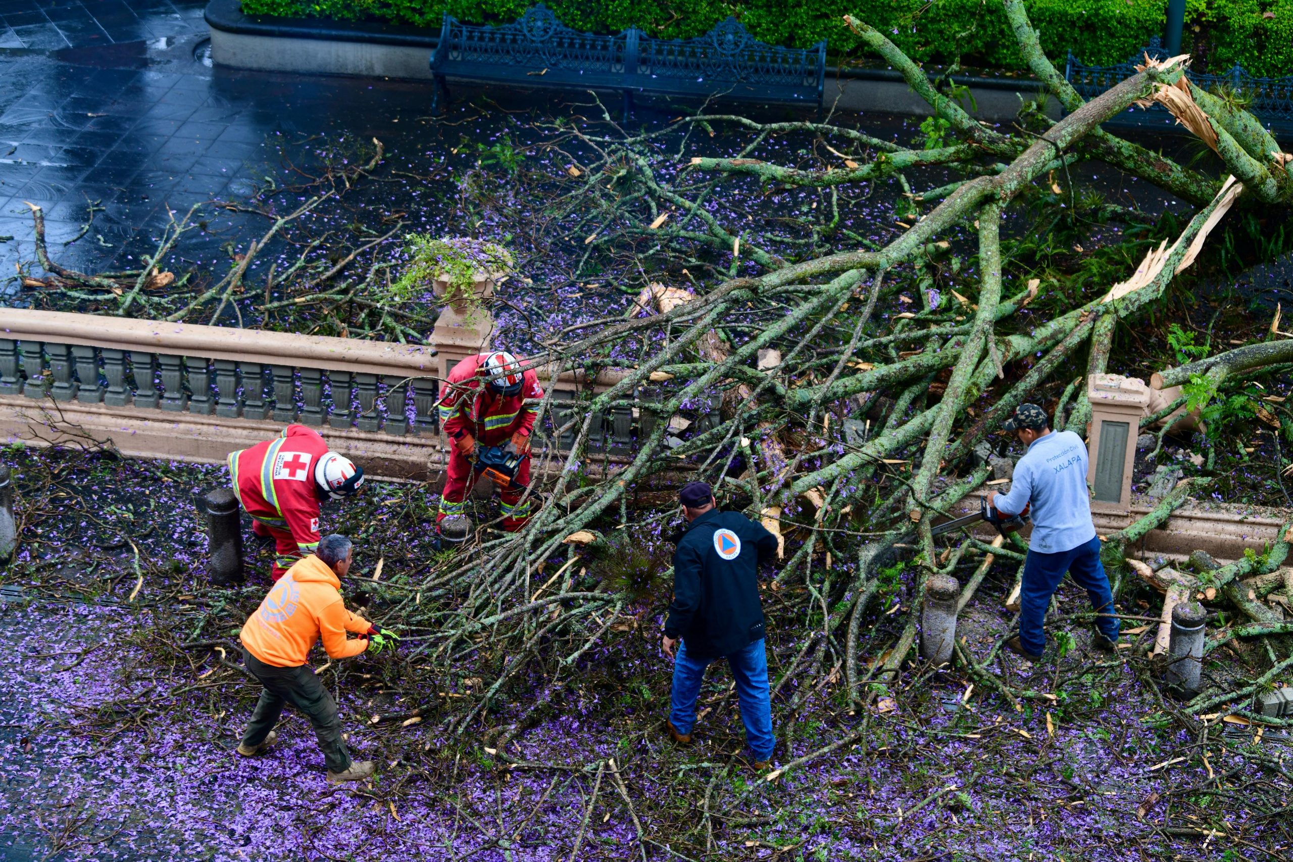 *No se registraron personas lesionadas Xalapa, Ver.- Personal de la Dirección de Protección Civil, en coordinación con diversas dependencias municipales, atendió la mañana de este martes el desgajamiento de una rama de Jacaranda en el parque Benito Juárez, sin ...