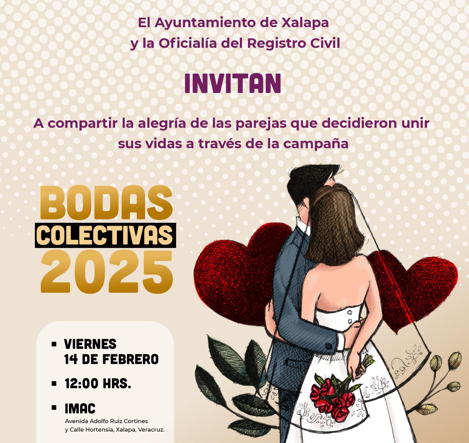 Xalapa, Ver.- Para celebrar el Día del Amor, brindar certeza jurídica y fortalecer el núcleo familiar, el Ayuntamiento y el Registro Civil de Xalapa llevarán a cabo este 14 de febrero a las 12:00 horas la ceremonia protocolaria de entrega de actas matrimoniales ...
