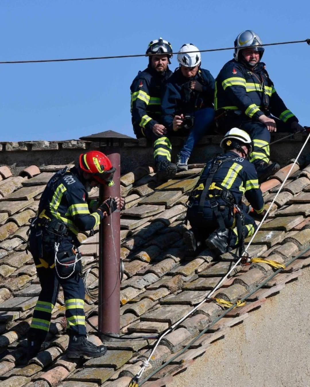 Bomberos del Vaticano colocaron la chimenea en el techo de la Capilla Sixtina, para la señal tradicional que indica que los preparativos para el cónclave están en su fase final. La chimenea es el conducto por el cual se emite el humo negro o blanco que informa al ...