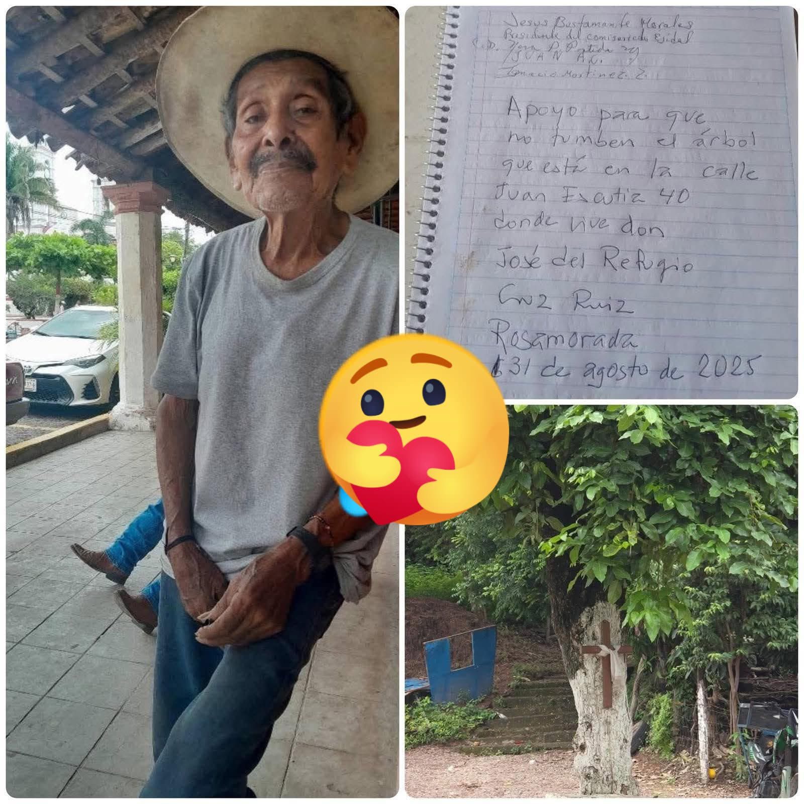 Mediante una libreta y lapicero, una persona adulta mayor con 80 años de edad, se encuentra juntando firmas para que no derriben un árbol que se encuentra frente a su casa, un árbol que lo ha acompañado a lo largo de su vida. A través de redes sociales se dio a ...