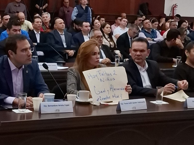 Como una protesta en silencio, la legisladora priísta sin decir nada mostró una carpeta con un mensaje dirigido al titular de la Secretaría de Seguridad Pública de Sinaloa, Óscar Rentería Schazarino durante la comparecencia. “Hoy nos faltan 2 niños, Gael y ...