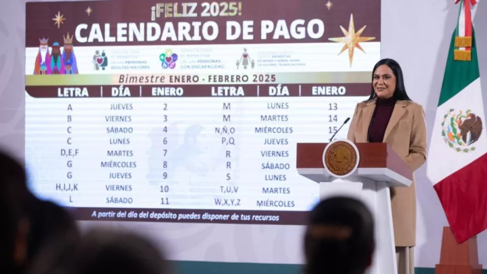La presidenta de México, Claudia Sheinbaum Pardo, da su mañanera del pueblo del jueves 02 de enero, desde Palacio Nacional, presentó el calendario de pagos de la pensión para adultos mayores y personas con discapacidad, así como de los apoyos para mujeres ...