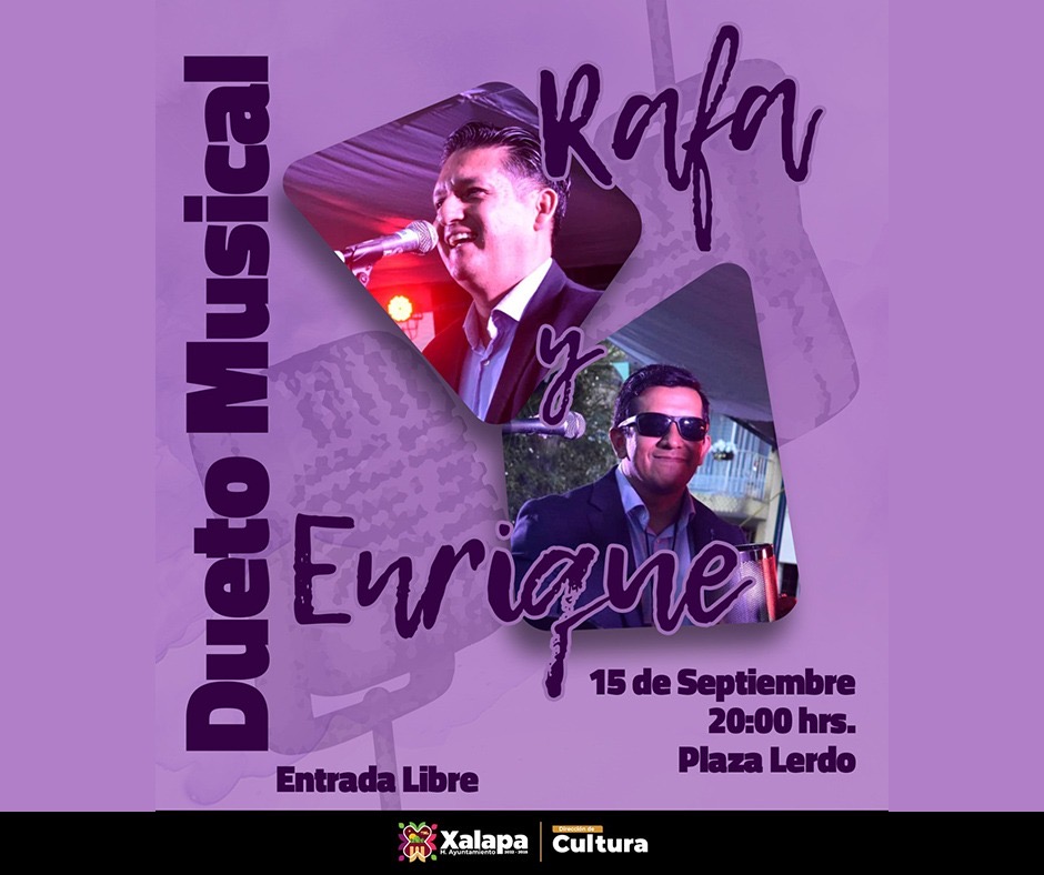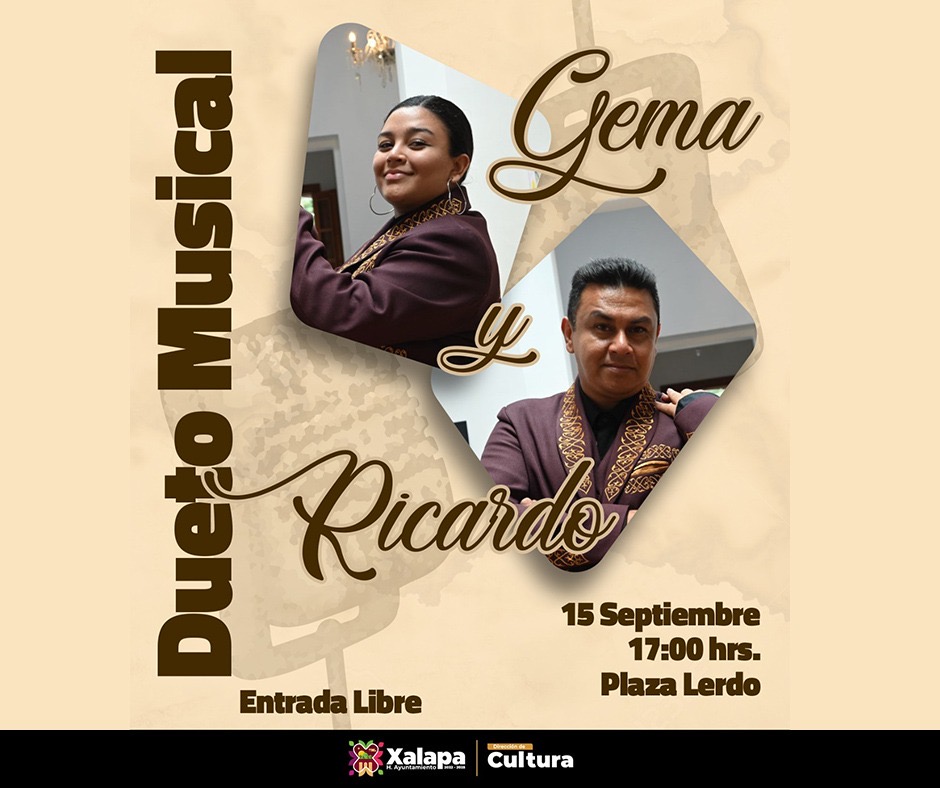 Este lunes 15 de septiembre, en la Plaza Lerdo, se presentará el dueto Gema y Ricardo a las 17:00 horas, seguido de Rafa y Enrique a las 18:00 horas.
