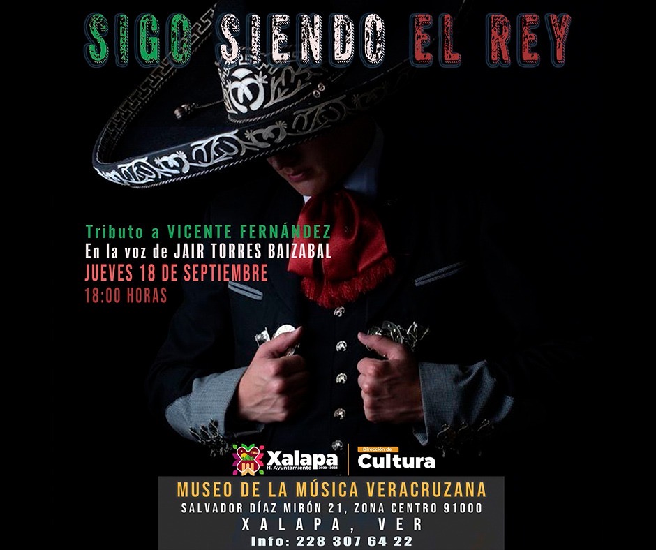 A las 18:00 horas, el Museo de la Música Veracruzana recibirá a Jair Torres Baizabal con el tributo a Vicente Fernández “Sigo siendo el Rey”.