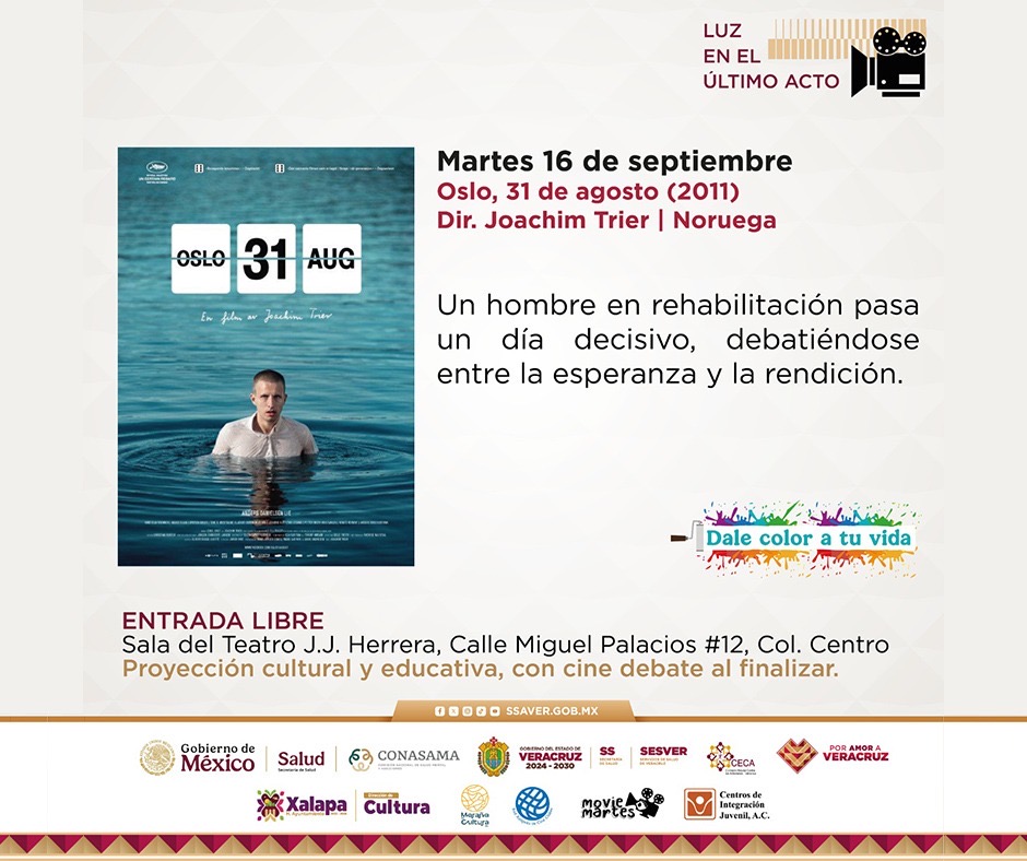 El martes continúa el ciclo de cine Luz en el último acto, con la proyección de la película “Oslo, 31 de agosto”, del director Joachim Trier, en el Teatro J. J. Herrera, a las 18:00 horas.