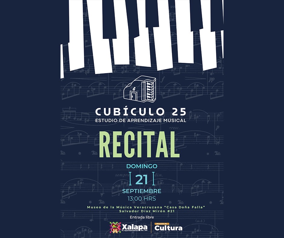 En el Museo de la Música Veracruzana, Cubículo 25, Estudio de Aprendizaje Musical, presentará un recital a las 13:00 horas.