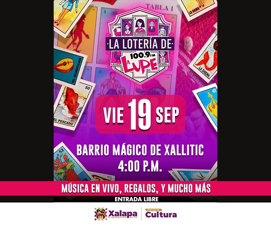 A las 16:00 horas, el Barrio Mágico de Xallitic tendrá la Lotería de Lupe 100.9 FM, con música en vivo y sorpresas.