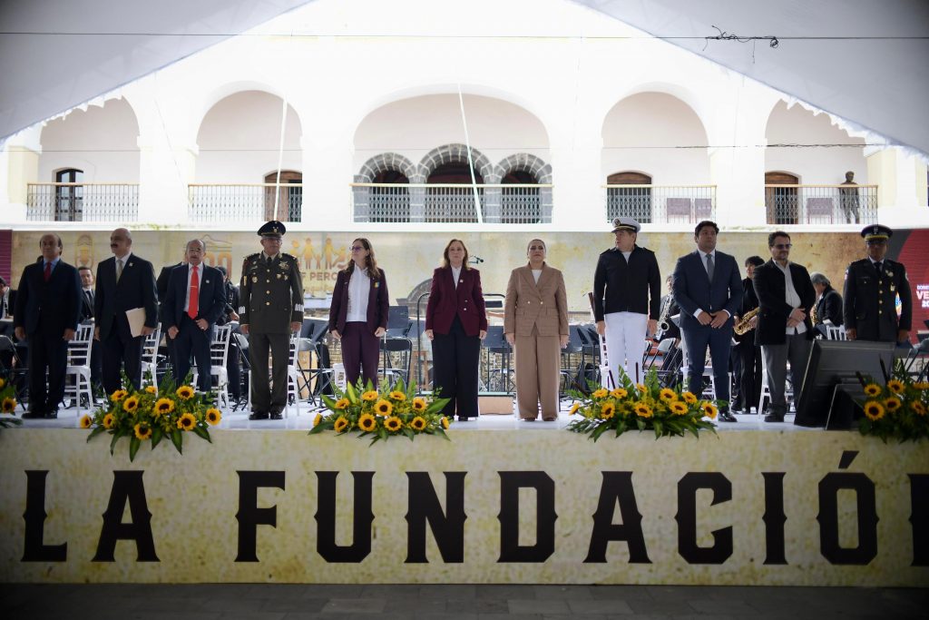 Perote, Ver., viernes 20 de junio de 2025.- Lagobernadora Rocío Nahle García presidió la ceremonia conmemorativa Perote 1525–2025, Orgullo de Nuestra Historia, al celebrarse los 500 años de la fundación del municipio, donde destacó la relevancia histórica, cultural y geográfica como parte fundamental de la identidad veracruzana y mexicana.