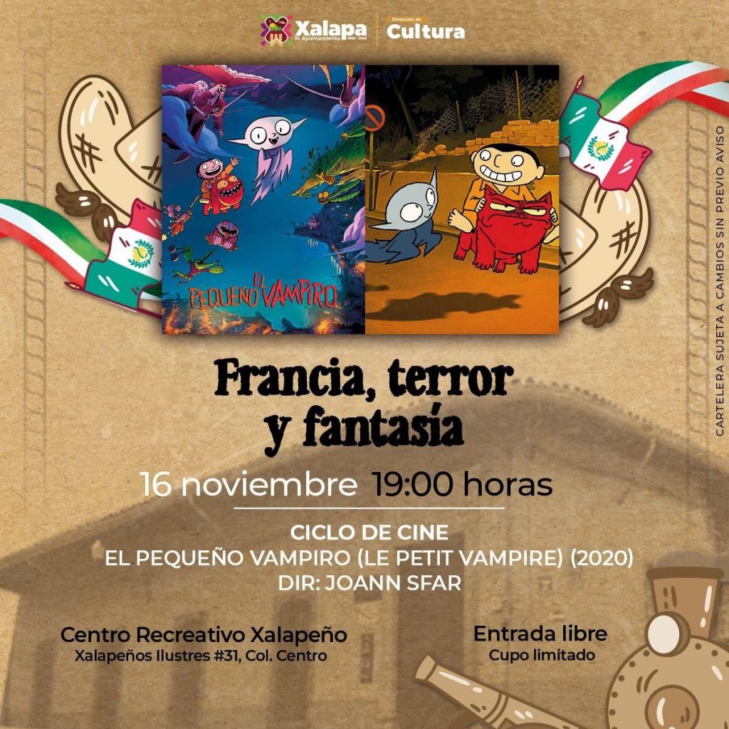 El jueves 16 de noviembre a las 18:00 horas, en el Museo de la Música Veracruzana, Jorge Alberto Arteaga encabezará la mesa de charlas “20 años de la refundación de la OCXA”, y a las 19:00 horas en el CRX se desarrollará el ciclo de cine “Francia, terror y fantasía”, con la proyección del filme “El pequeño vampiro”, de Joann Sfar (2020).