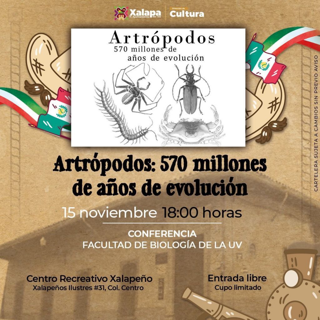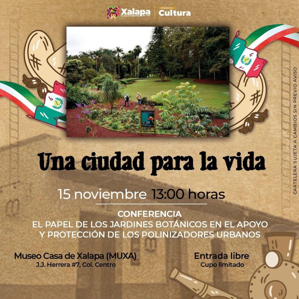 El miércoles 15 de noviembre a las 13:00 horas, en el Museo Casa de Xalapa (MUXA), se desarrollará el evento “Una ciudad para la vida”, con la conferencia “El papel de los jardines botánicos y protección de los polinizadores urbanos”; a las 18:00 horas en el Centro Recreativo Xalapeño, se impartirá la conferencia “Antrópodos, 570 millones de años de evolución”.