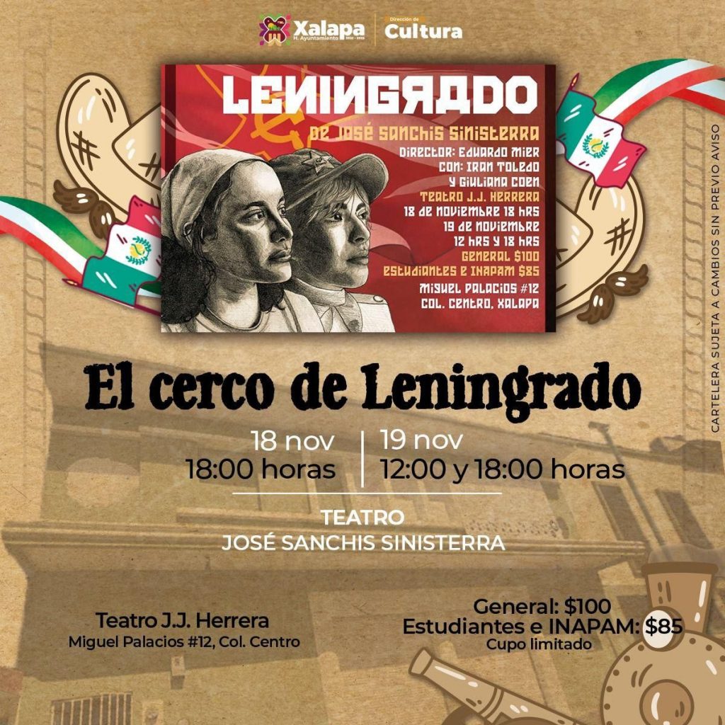 El 18 y 19 de noviembre a las 9:30 horas, los Scouts Tradicionales de México desarrollarán el Primer Torneo de Ajedrez; a las 12:00 horas el sábado y a las 12:00 y 18:00 horas el domingo, José Sanchis Sinisterra actuará en la obra “El cerco de Leningrado”, en el Teatro J.J. Herrera.