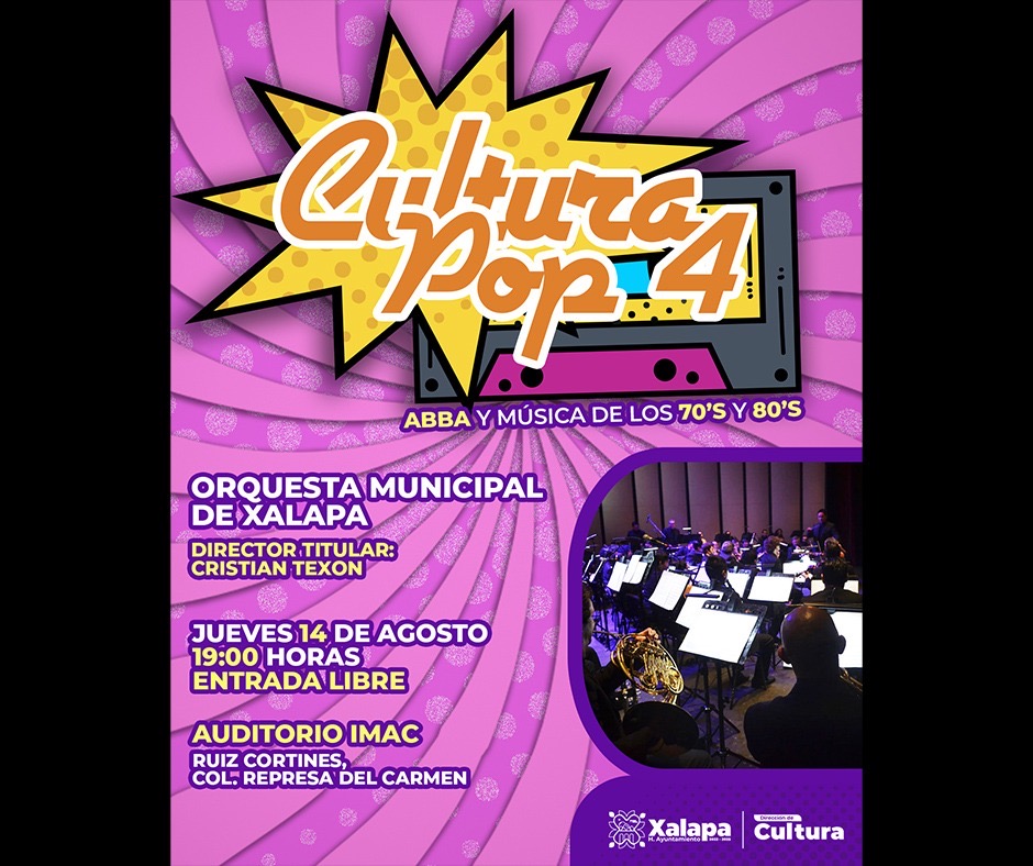 A las 19:00 horas, en el Centro Recreativo Xalapeño (CRX), se presentará la muestra de cortometrajes “No Films”; y en la IMAC, el concierto “Cultura Pop 4, Abba y Música de los 70 y 80”. En el Teatro J. J. Herrera se ofrecerá el concierto “Ecos de los 80”.