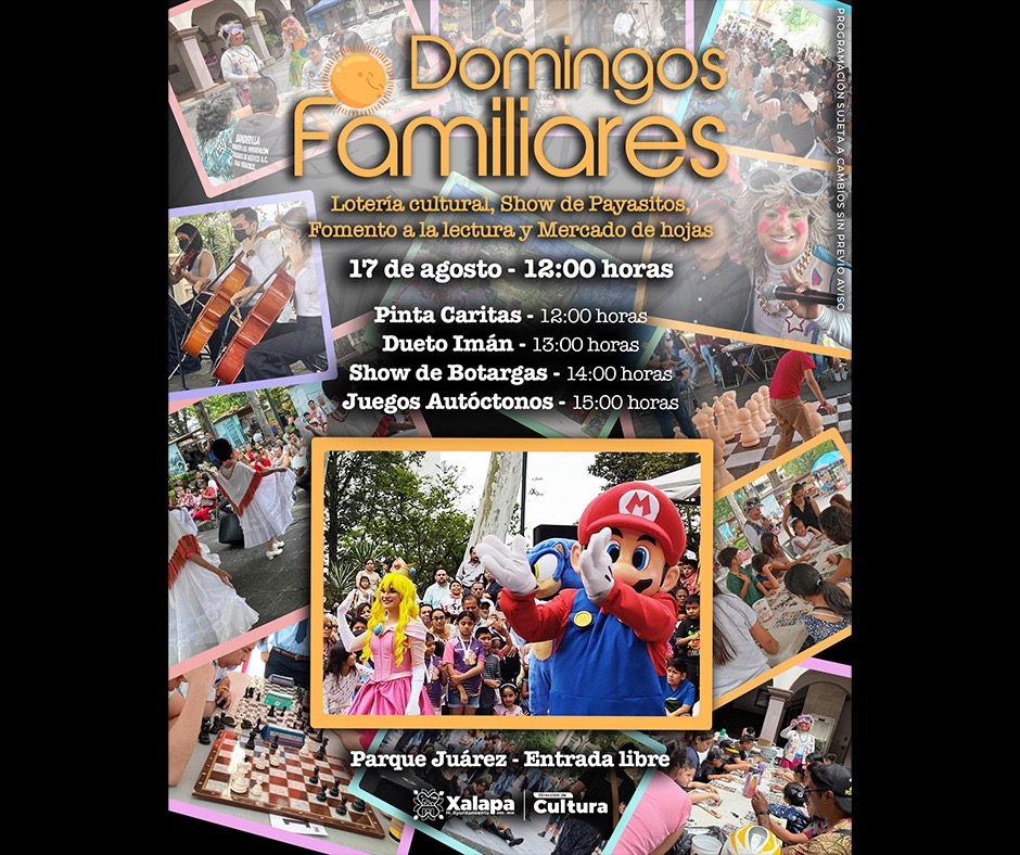 A las 12:00 horas, el Parque Juárez será sede del programa “Domingos Familiares”, y a las 17:00 horas se desarrollará el tradicional “Danzón pa’l Corazón”, en este mismo espacio.