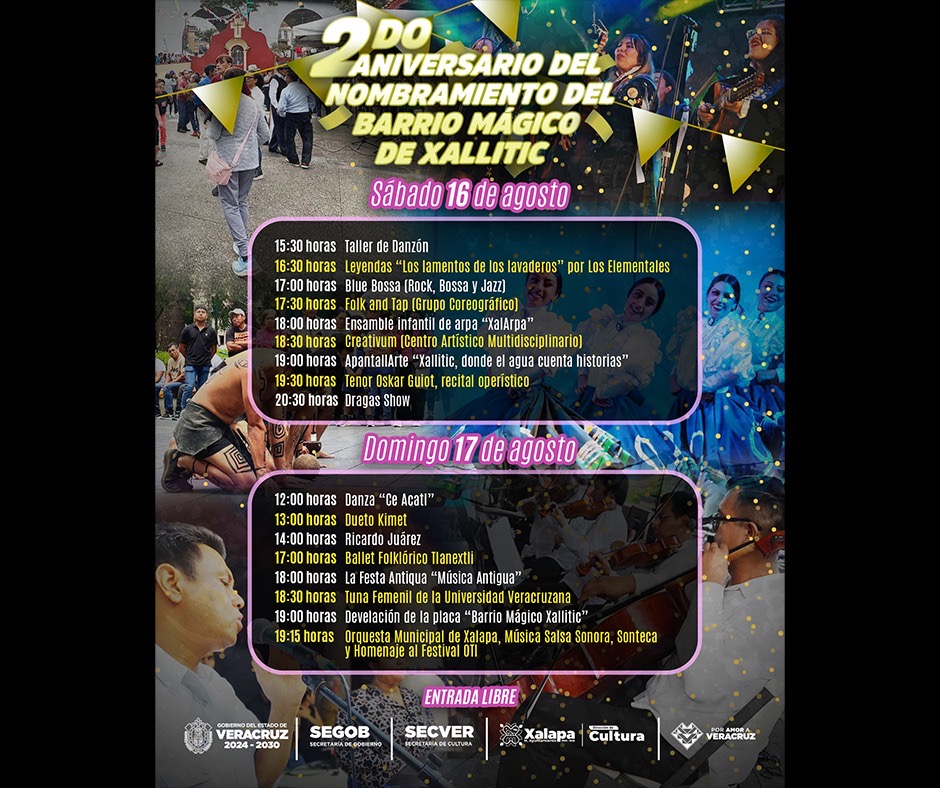 El jueves, a las 17:00 horas, en el Barrio Mágico de Xallitic, el Grupo Roani se presentará en las “Tardes de Xallitic”; a las 18:00 horas, el Museo de la Música Veracruzana recibirá a Cezilya León con el concierto “Legato, Agua-Savia-Psique”.