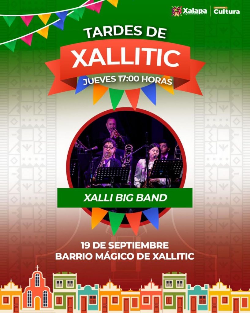 El jueves 19 de septiembre a las 17:00 horas estará la Xalli Big Band en el Barrio Mágico de Xallitic; mientras que a las 19:00 horas, en el Centro Recreativo Xalapeño (CRX) la Escuela de Artes Cinematográficas presentará su muestra fímica 2024.