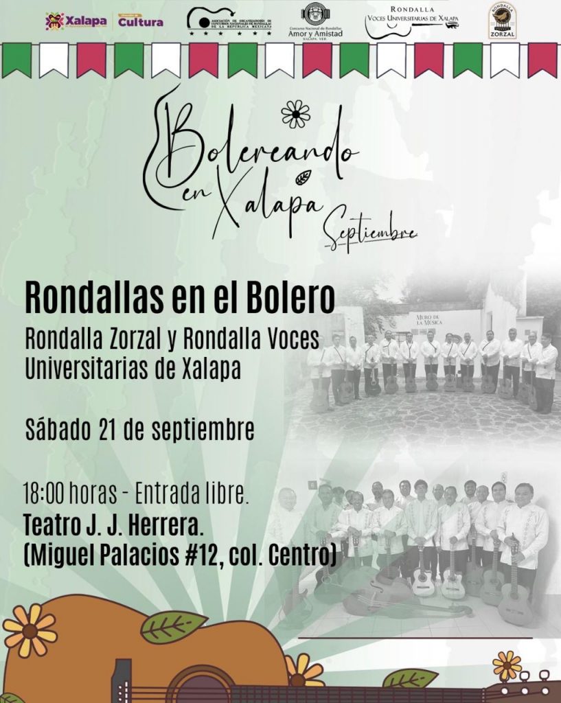 A las 17:00 horas en el Museo de la Música Veracruzana, se presentará el concierto “L’acalet dúo, cantos del corazón, ecos de Latinoamérica”. A las 18:00 horas en el Teatro J.J. Herrera será el turno del evento “Rondallas en el bolero”, con las agrupaciones “Zorzal” y “Voces”.