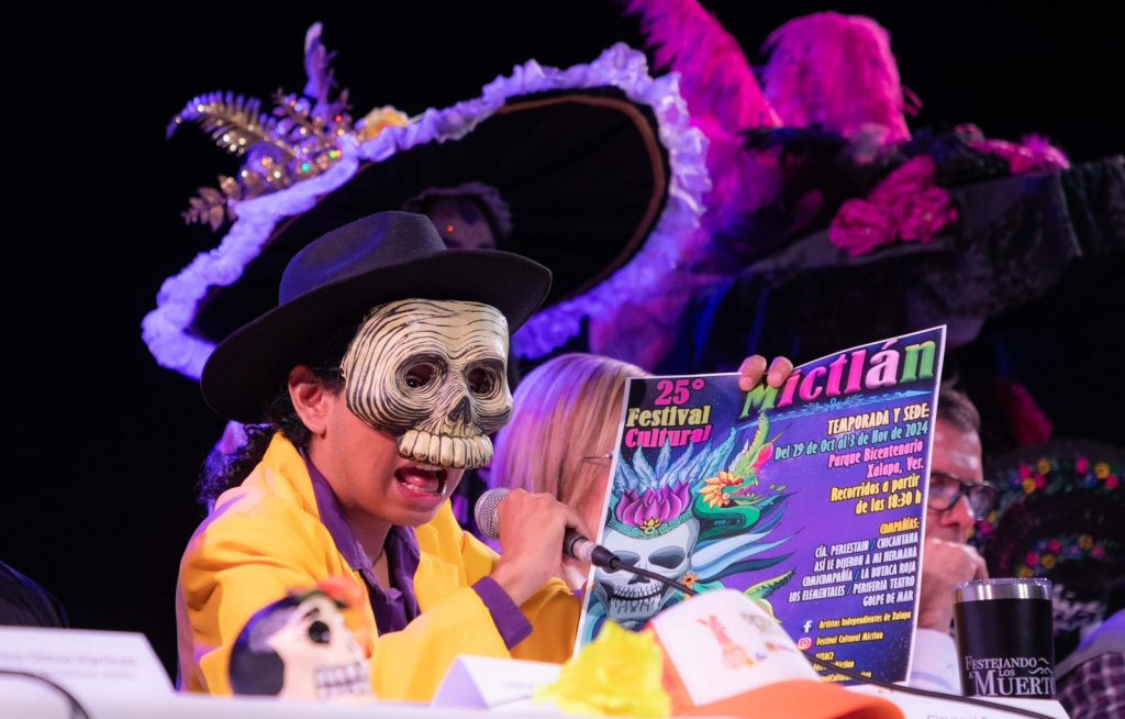 Xalapa, Ver.- Como parte de las actividades para celebrar el Día de Muertos y preservar las tradiciones mexicanas, funcionariado de la Dirección de Cultura, en coordinación con colectivos y artistas independientes, presentó el programa “Festejando a los Muertos 2024”.