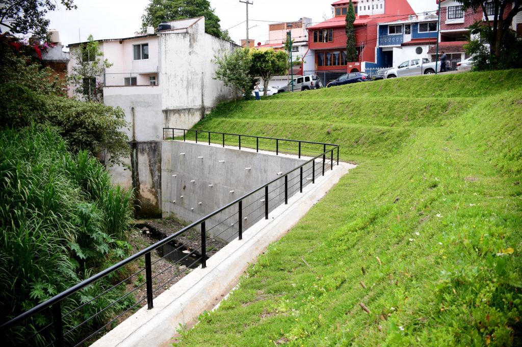En la colonia Vista Hermosa, el Edil también constató la construcción de muro de contención en la calle Agua Dulce. La obra que beneficia a 10 mil 200 personas también consideró banquetas, barandal y áreas para el esparcimiento y dignificación del entono de las familias que habitan en la zona.