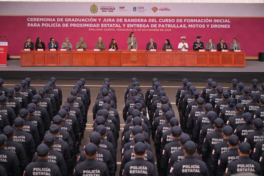 Xalapa, Ver., lunes 10 de noviembre de 2025.- En cumplimiento al compromiso de garantizar la seguridad de las y los veracruzanos, la gobernadora Rocío Nahle García entregó 101 patrullas, 250 motocicletas y 41 drones, con una inversión superior a los 200 millones de pesos, que fortalecerán las capacidades operativas de la fuerza policial e impulsa la Estrategia Estatal de Seguridad para construir un Veracruz de paz.