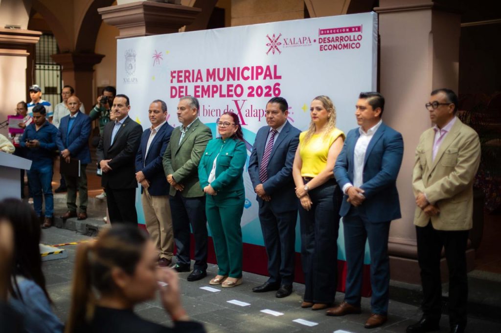 Xalapa, Ver., 13 de marzo de 2026.- En el Ayuntamiento asumimos el compromiso de impulsar el empleo como una responsabilidad pública de primer orden, ya que cuando se genera trabajo se fortalece la economía, mejora la calidad de vida de las familias y se construye una sociedad más justa, afirmó la Alcaldesa, Lic. Daniela Griego Ceballos, al inaugurar con el titular de la Secretaría de Trabajo, Previsión Social y Productividad de Veracruz, Mtro. Luis Arturo Santiago Martínez, la Primera Feria Municipal del Empleo 2026, realizada este viernes en el patio central de Palacio Municipal.