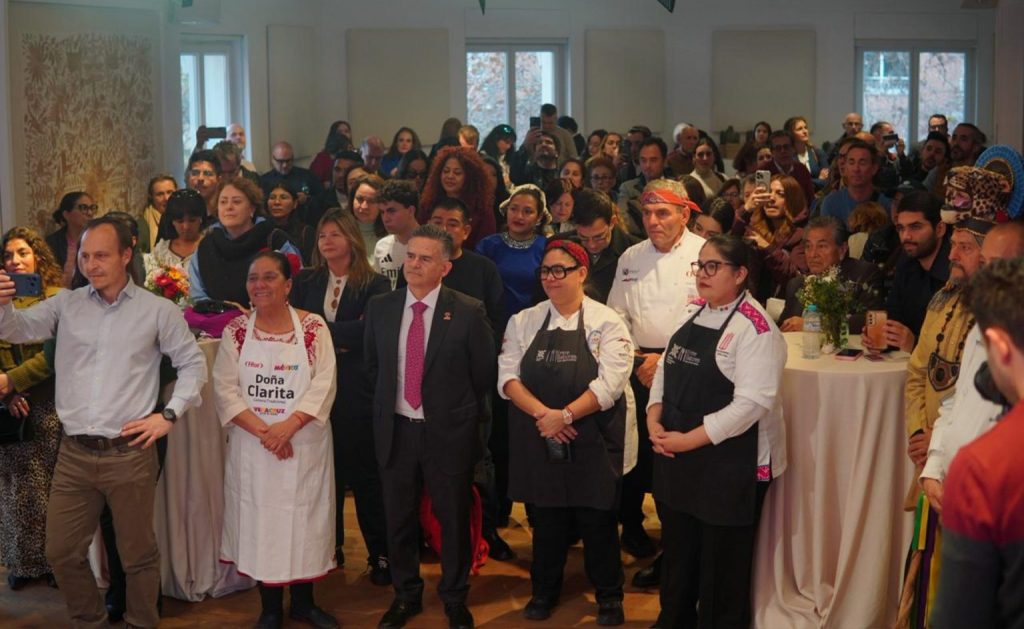 Madrid, Esp., martes 20 de enero de 2026.- Previo a la inauguración de la Feria Internacional del Turismo (FITUR), cocineras tradicionales, chefs y representantes de 13 pueblos originarios engalanaron las instalaciones de la Fundación Casa de México en España, al presentar LaMagia Gastronómica de Veracruz.