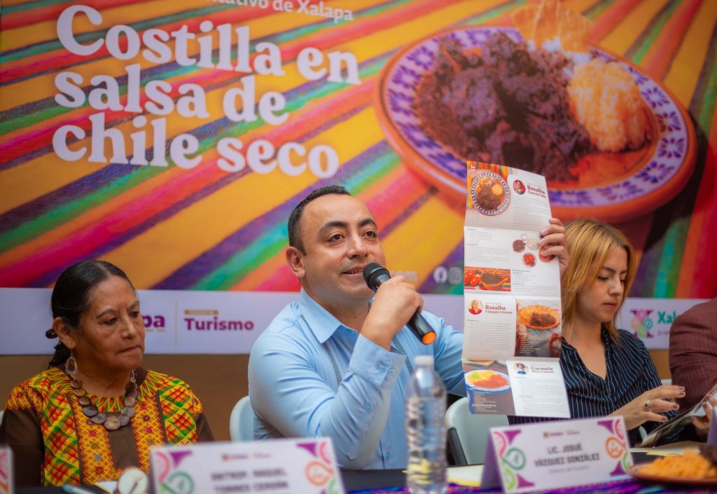 Xalapa, Ver.- Para posicionarla como un producto más de la oferta turística de la ciudad y celebrar este 16 de noviembre el Día Nacional de la Gastronomía Mexicana, autoridades municipales presentaron el recetario que incluye la costilla de puerco en salsa de chile seco, el platillo representativo de Xalapa.